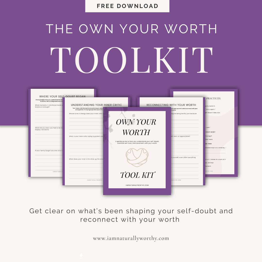 If you’re ready to keep growing and deepening your relationship with yourself, there’s a way to keep the momentum going. The Own Your Worth Toolkit is a gentle next step.